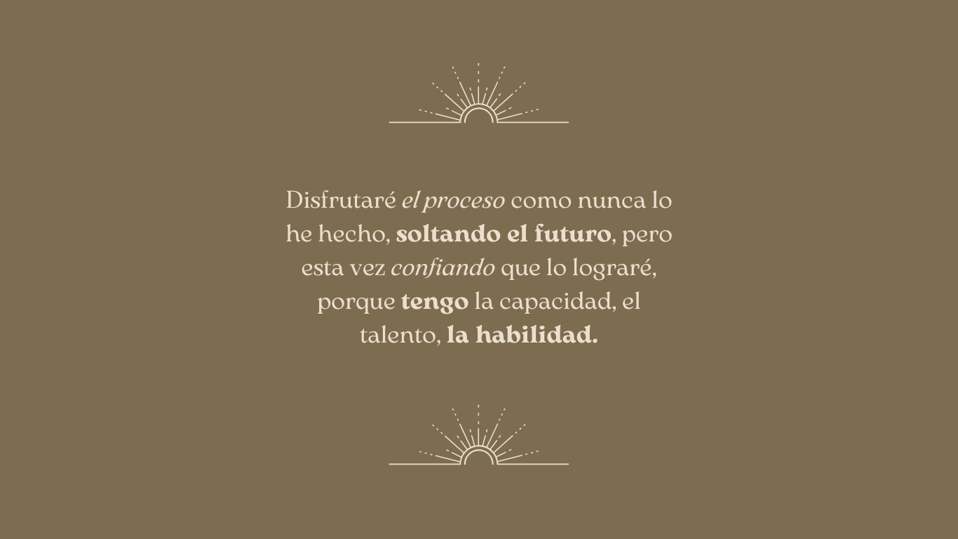 Dejaré las excusas en el pasado y me enfocaré en lo que hago hoy. Ya no me preocuparé por el futuro porque mi energía estará en el presente, creando, soñando, vibrando pero sobre todo creyendo que puedo lograrlo.