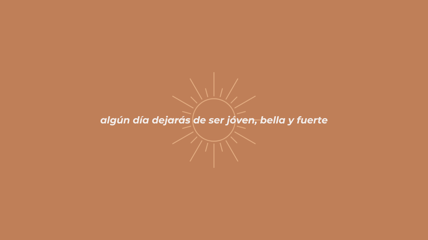 Algún día dejarás de tener la misma belleza, la misma juventud, la misma fortaleza y no lo digo para que tengas miedo, no, al contrario, es parte de la vida misma, el pasar del tiempo es parte de evolucionar, de crecer, de transformar. Lo que realmente quiero es que despiertes, que no permitas perderte en este círculo vicioso que se llama estrés y rapidez, que no corras en círculos buscando lo superficial, que no te alejes de ti por retener un amor, un trabajo, una posición, una «falsa vida».